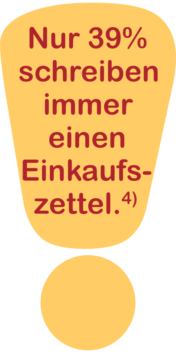 Und damit wir nicht im Supermarkt vor den Regalen stehen und uns an all dies aus dem Stegreif heraus erinnern müssen, hilft die Erstellung eines Einkaufszettels. Ob als Checkliste im Handy oder handschriftlich auf Papier notiert, spielt dabei keine Rolle. Eine Einkaufsliste hilft außerdem dabei, verlockenden Angeboten und Großpackungen zu widerstehen. So werden Spontankäufe vermieden, die einem bedarfsgerechten Einkauf entgegenstehen.