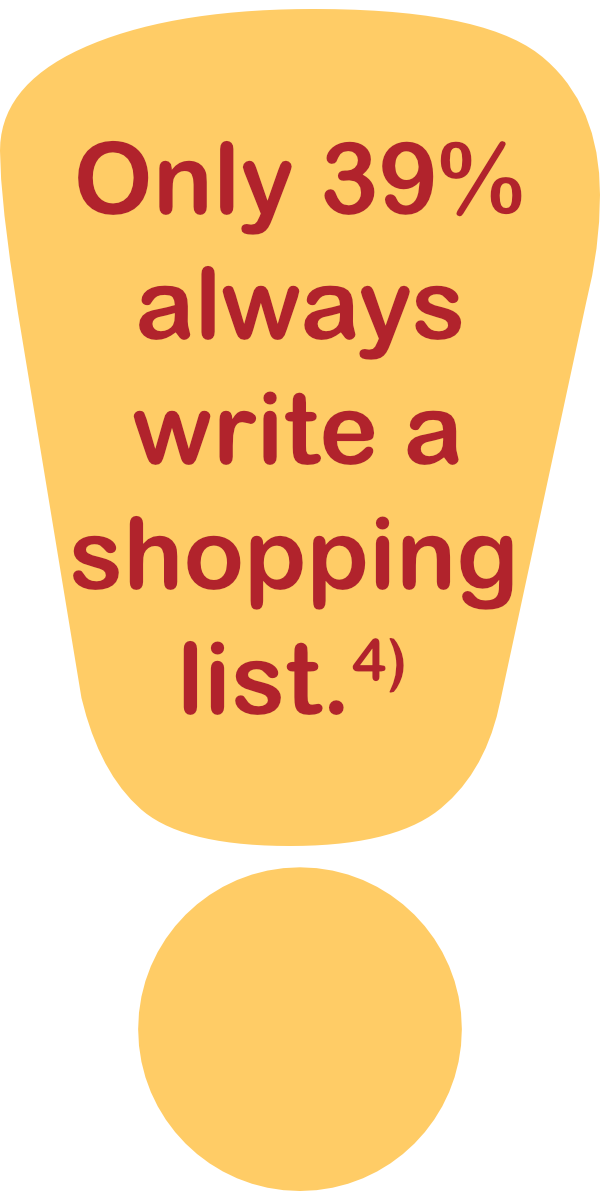 And so that we don't have to stand in front of the shelves at the supermarket and try to remember all this off the top of our heads, it helps to make a shopping list. It doesn't matter whether it's a checklist on your mobile phone or handwritten on paper. A shopping list also helps you resist tempting offers and large packs. This avoids spontaneous purchases that are not in line with your needs.